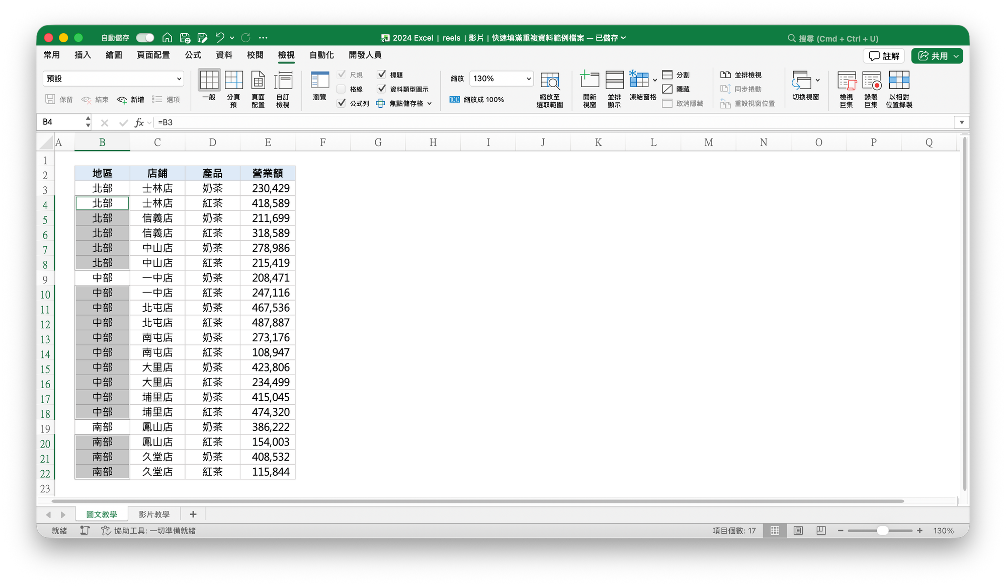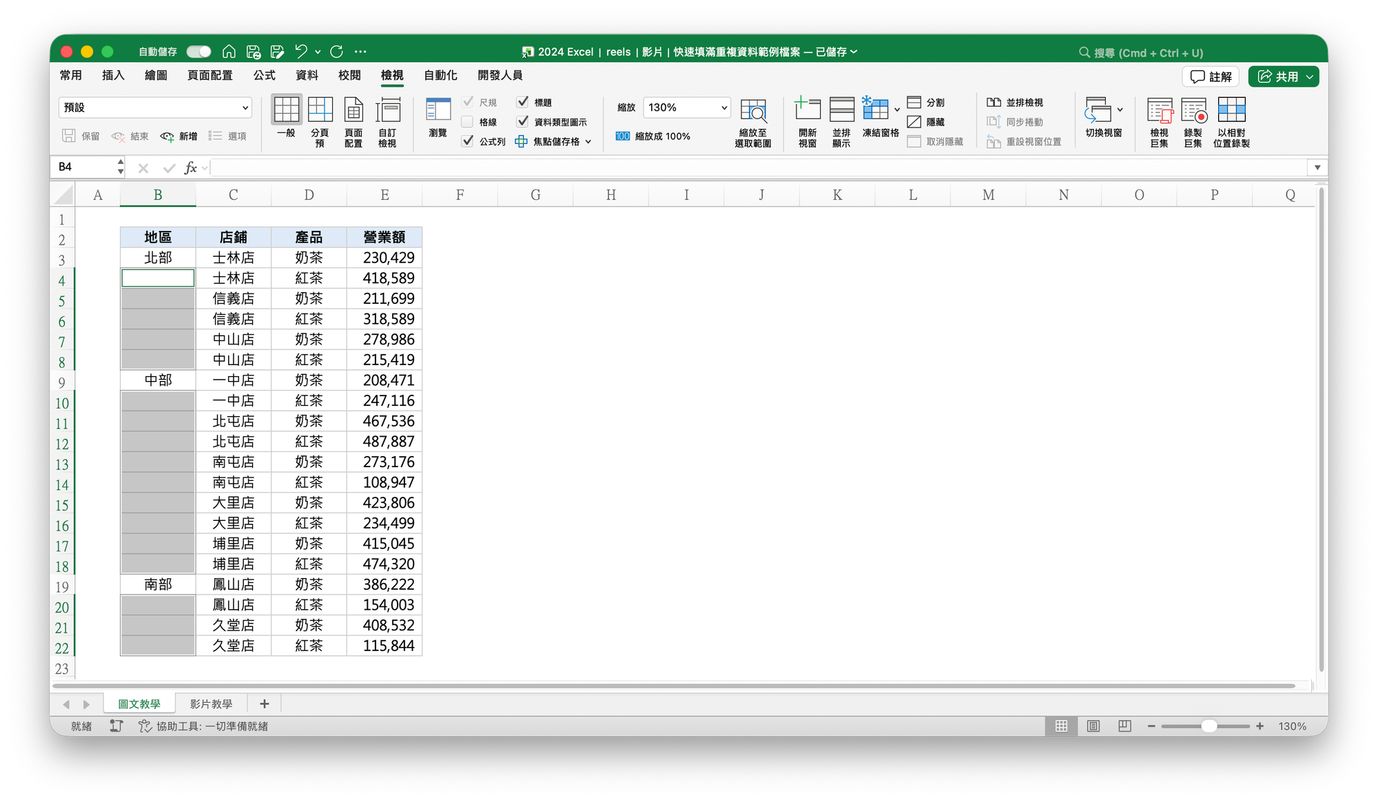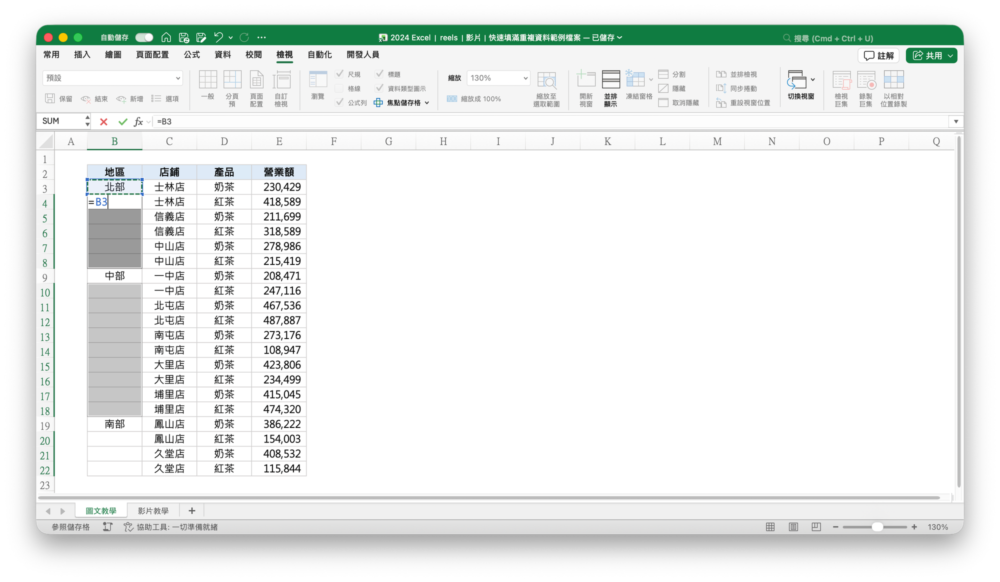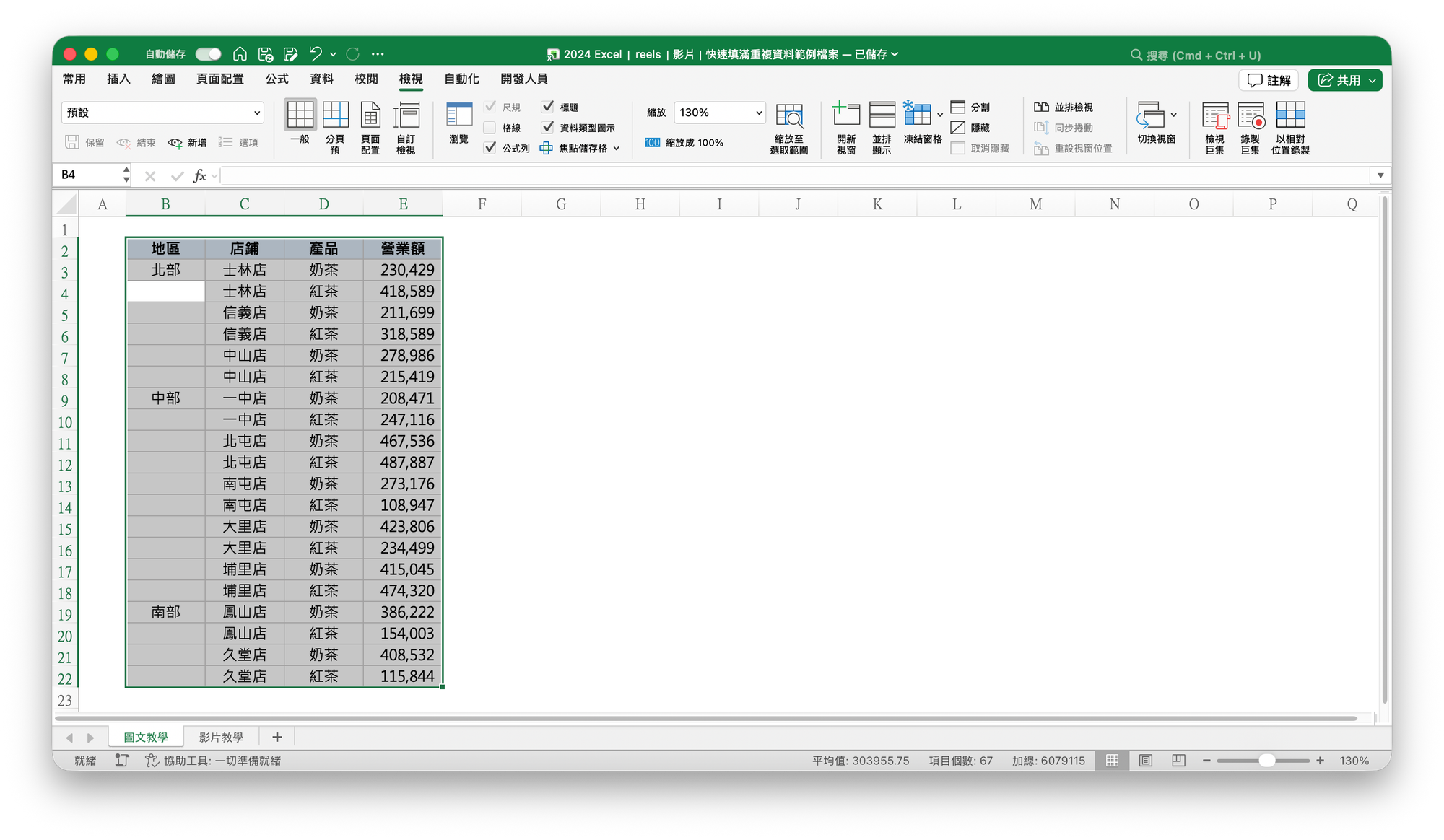 最後按下關鍵組合鍵 Ctrl + Enter,所有的空白格就會瞬間填滿跟上方一樣的資料囉!
