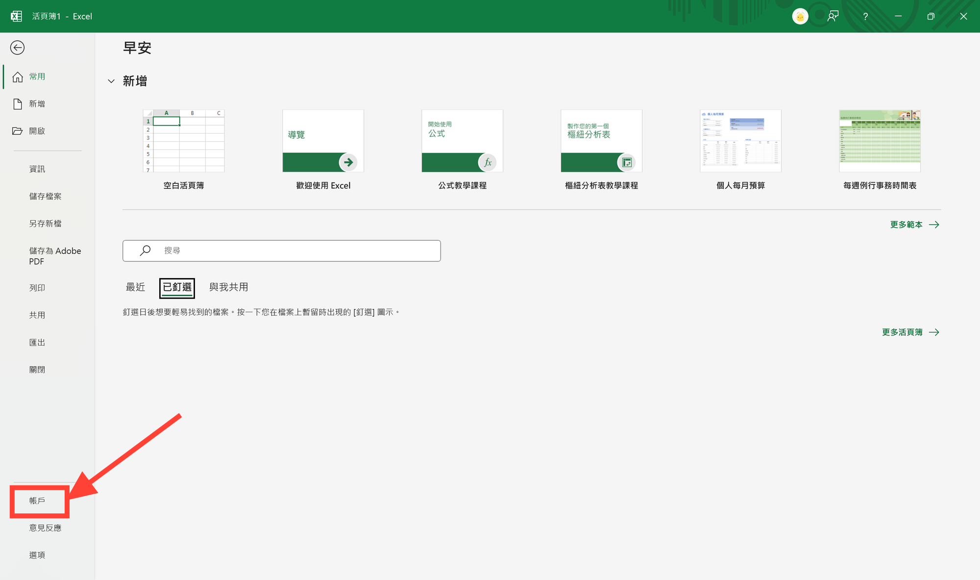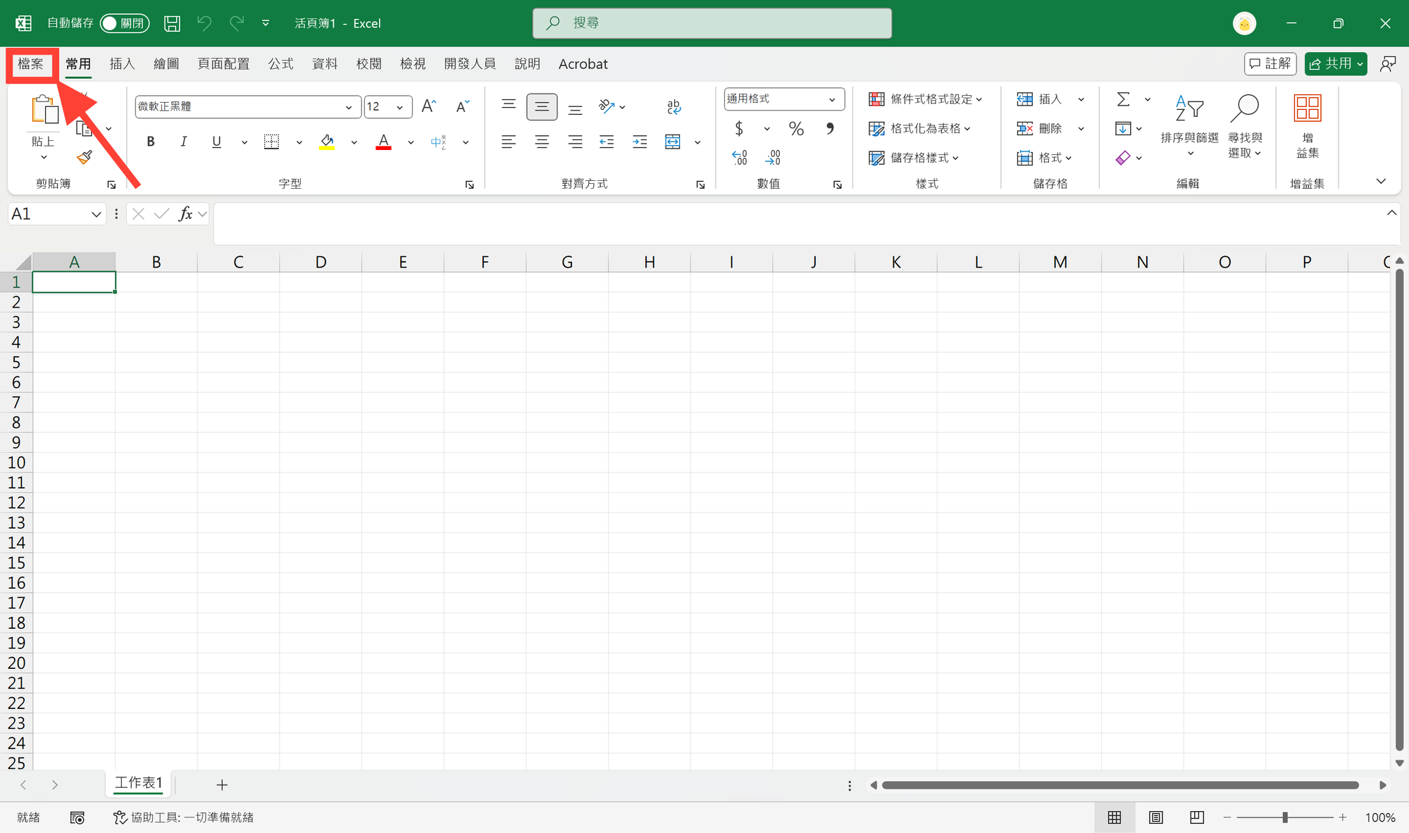 - 打開 Excel > 點選左上角的「檔案」