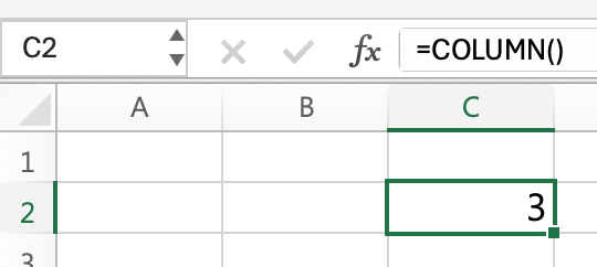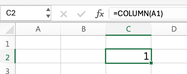 我們在儲存格 C2 輸入 =COLUMN(A1) 代表回傳「儲存格 A1 的欄號」